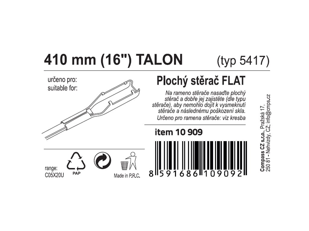 Stěrač FLAT BULK (TALON) 16"/410mm