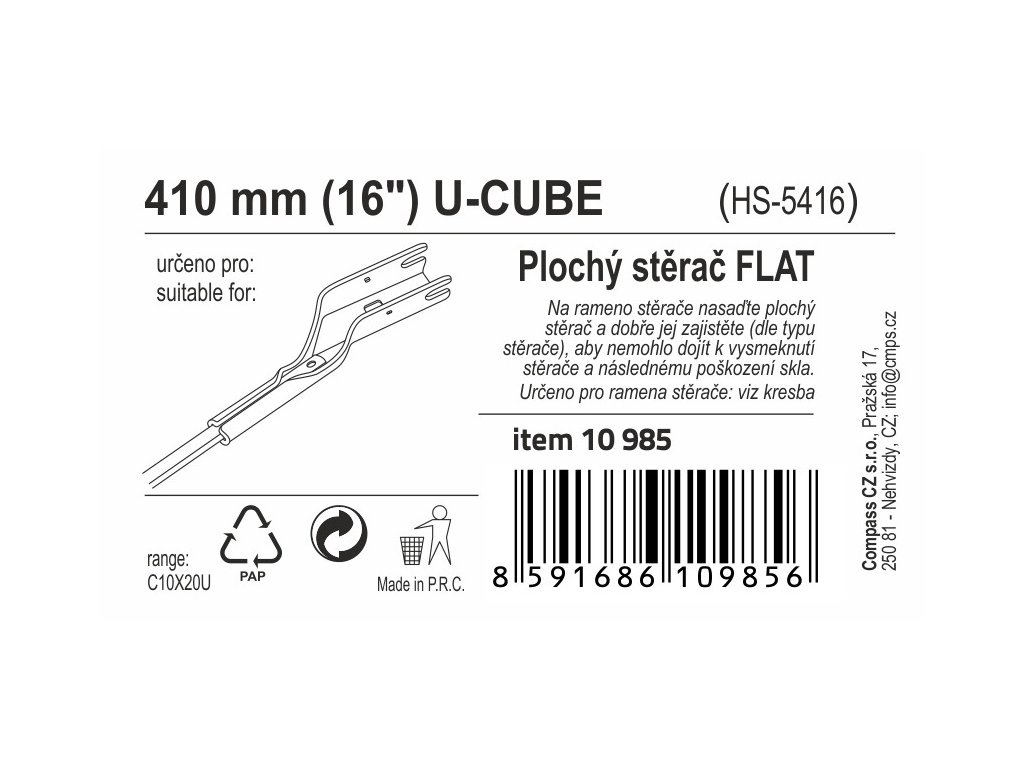 Stěrač FLAT BULK (U-CUBE) 16"/410mm