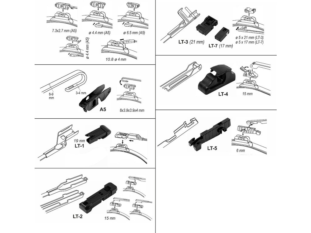 Plochý stěrač nové konstrukce, který zajišťuje důkladné a rovnoměrné stírání. Speciální uchycení, díky kterému lze pomocí přiložených adaptérů použít tento stěrač pro řadu různých zakončení ramen stěračů. Balení á 1 ks ve speciálním "otevíracím" blisteru. Tento typ plochého stěrače je osazen gumičkou s černým grafitem, umožňuje i její výměnu.