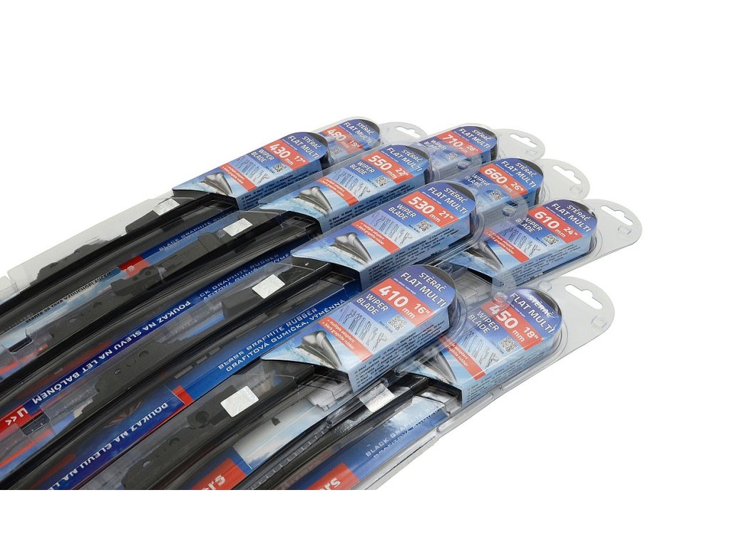 Plochý stěrač nové konstrukce, který zajišťuje důkladné a rovnoměrné stírání. Speciální uchycení, díky kterému lze pomocí přiložených adaptérů použít tento stěrač pro řadu různých zakončení ramen stěračů. Balení á 1 ks ve speciálním "otevíracím" blisteru. Tento typ plochého stěrače je osazen gumičkou s černým grafitem, umožňuje i její výměnu.