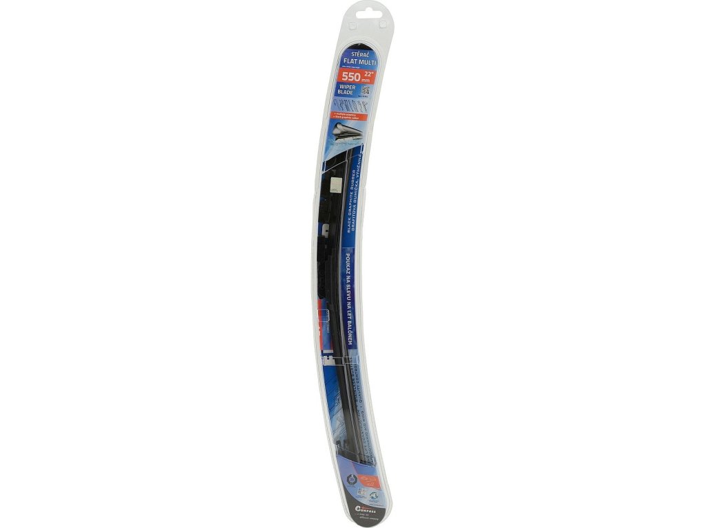 Plochý stěrač nové konstrukce, který zajišťuje důkladné a rovnoměrné stírání. Speciální uchycení, díky kterému lze pomocí přiložených adaptérů použít tento stěrač pro řadu různých zakončení ramen stěračů. Balení á 1 ks ve speciálním "otevíracím" blisteru. Tento typ plochého stěrače je osazen gumičkou s černým grafitem, umožňuje i její výměnu.