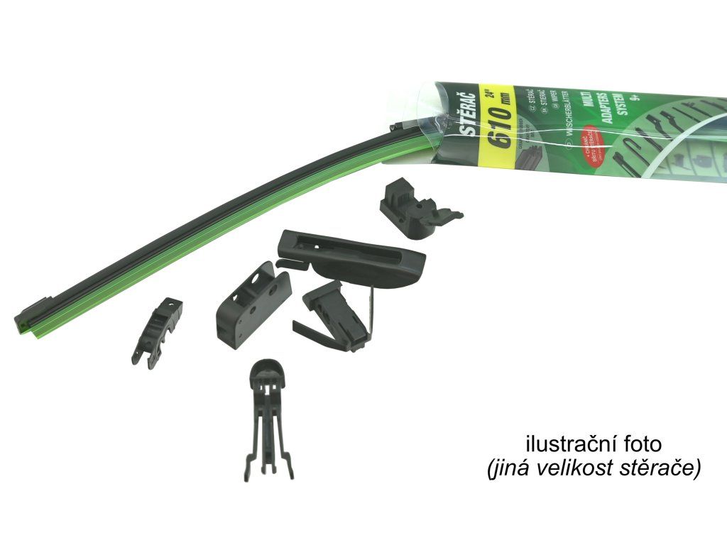 Plochý stěrač FLAT FLEXI, baleno á 1 ks v průhledném plastovém obalu. Obsahuje celou řadu adaptérů, díky kterým je snadné stěrač upevnit na většinu běžně používaných zakončení ramének stěračů. Stěrač je vybaven grafitovým břitem pro výtečné stírání.