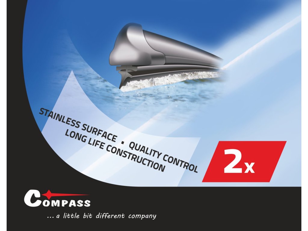Vysoce kvalitní pružný člen plochého stěrače zajišťuje stejnoměrný tlak grafitového břitu v celé jeho délce, což zamezuje rozmazávání nečistot a vytváření pruhů.Tento typ plochého stěrače je osazen gumičkou s černým grafitem, umožňuje i její výměnu.