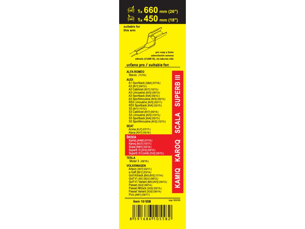 Stěrače FLAT SET (CUBE16) 660+450mm OCT IV, SUP III, Karoq, Kamiq, Enyaq