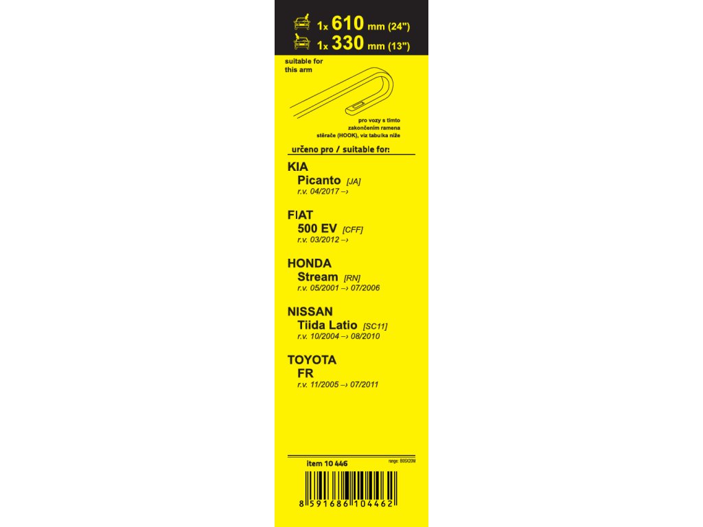 Sada dvou plochých stěračů FLAT (řidič + spolujezdec) se speciálním uchycením. Délky stěračů a systém uchycení na ramínko jsou přizpůsobeny vybraným vozům (viz tabulka použití).