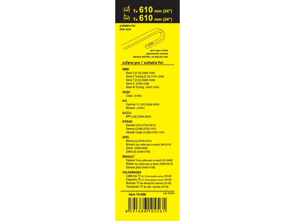 | Opel Movano [A] (bez ostřikovače na stěrači) | 06/98 - 03/10 |