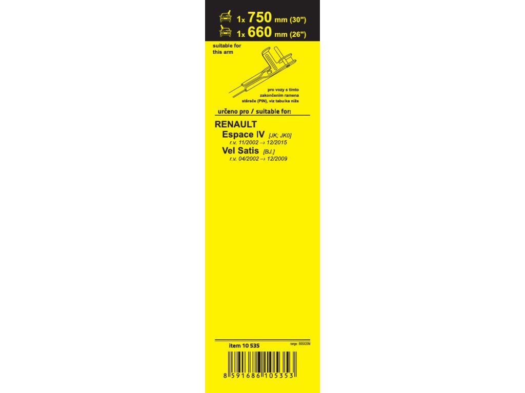 Sada dvou plochých stěračů FLAT (řidič + spolujezdec) se speciálním uchycením. Délky stěračů a systém uchycení na ramínko jsou přizpůsobeny vybraným vozům (viz tabulka použití).