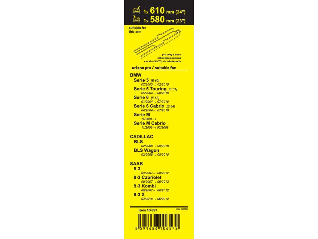 Sada dvou plochých stěračů FLAT (řidič + spolujezdec) se speciálním uchycením. Délky stěračů a systém uchycení na ramínko jsou přizpůsobeny vybraným vozům (viz tabulka použití).