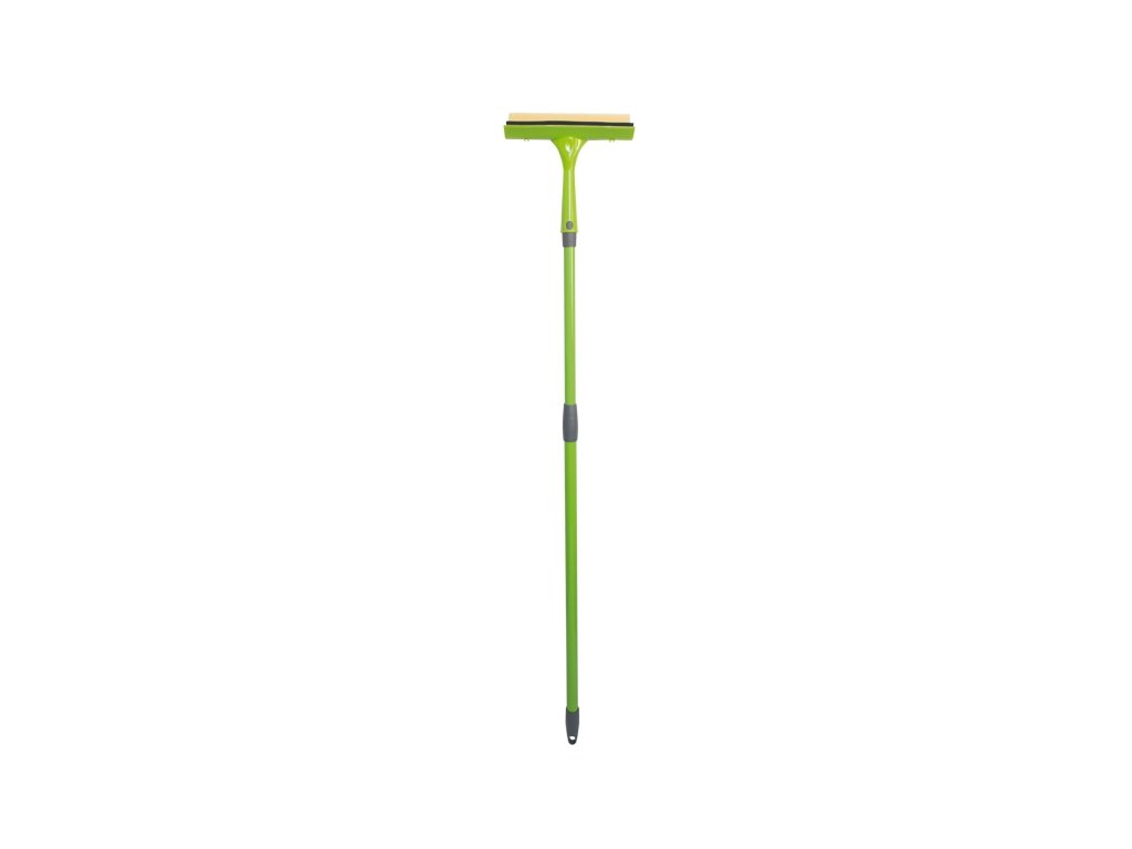Stěrka dokonale stírá vodu z rovných povrchů, je oboustranná (jedna strana molitan, druhá strana gumová stěrka).Stěrka je dodávána s teleskopickou násadou délky až 130 cm, šířka stěrky 20 cm.
