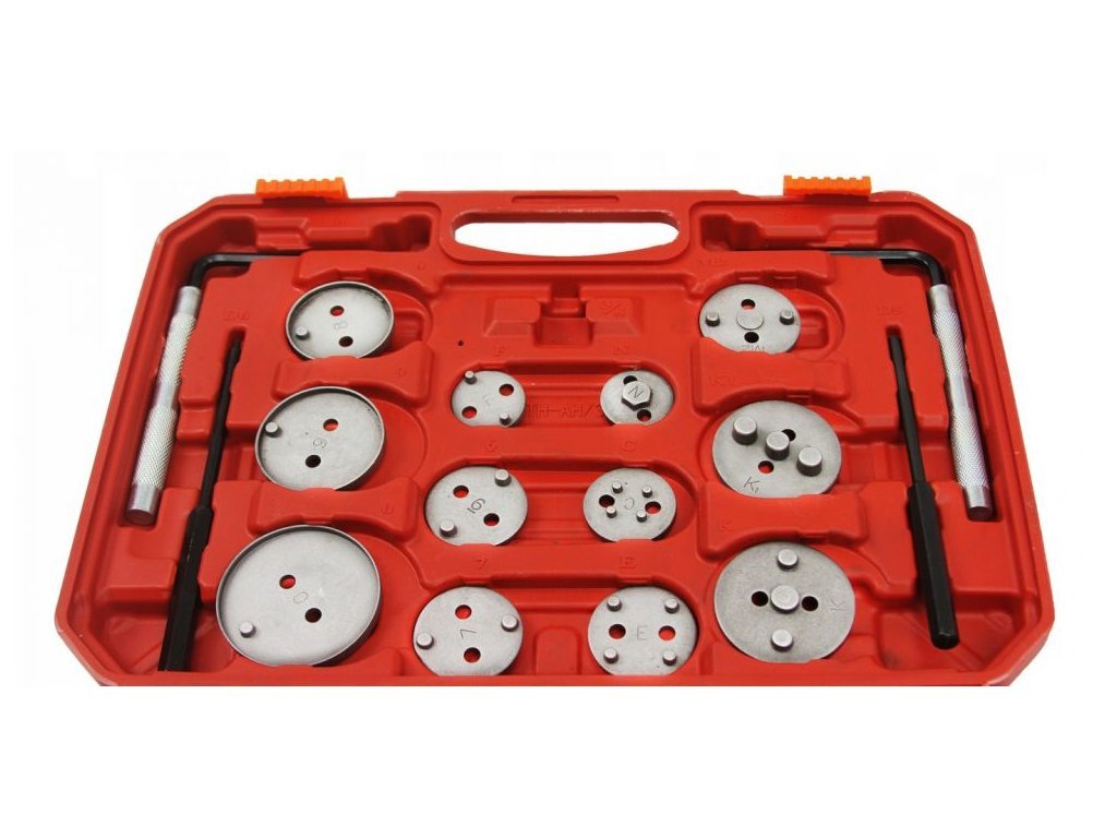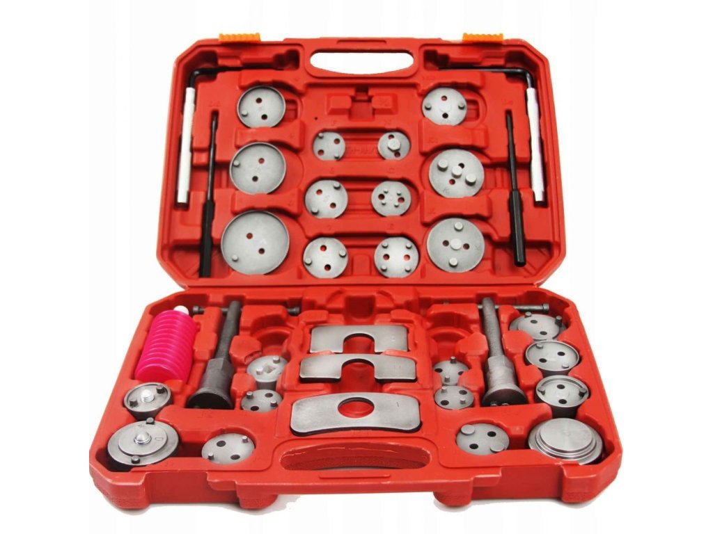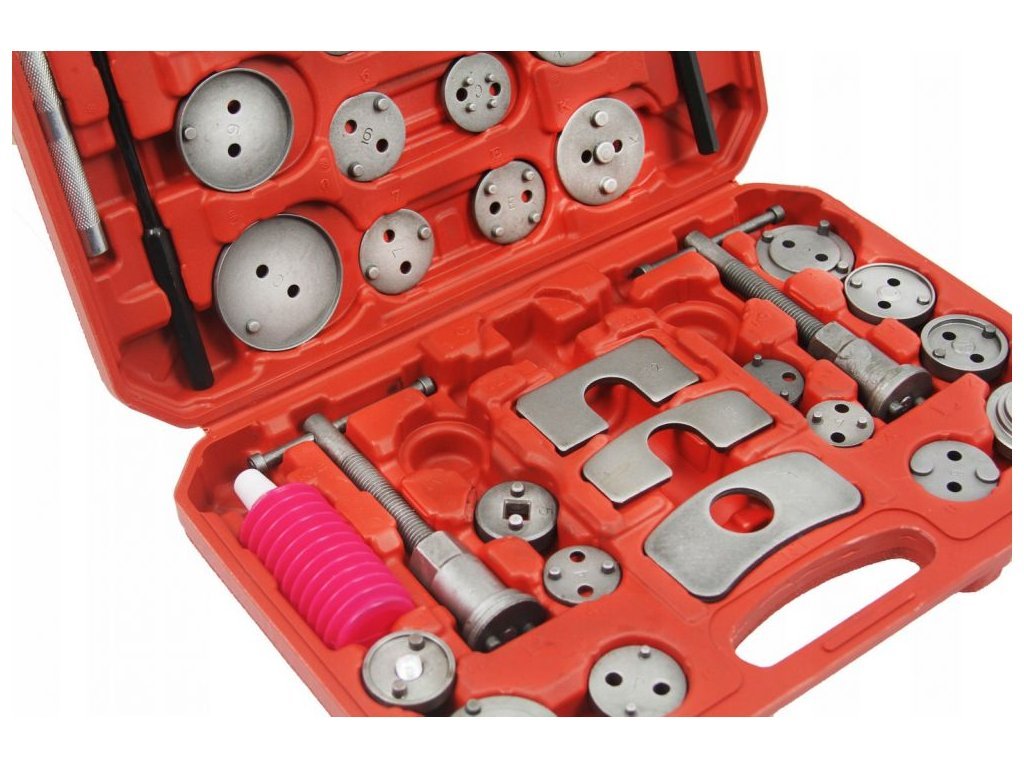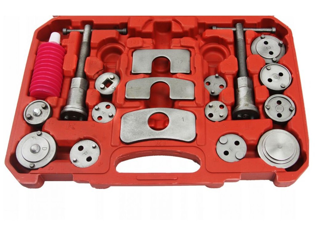 Univerzální sada v plastovém kufru slouží pro montáž, demontáž, zpětné vracení pístů, třmenů kotoučových brzd. U vozidel s třmeny kotoučových brzd a s integrovanou jednotkou ruční brzdy se zpětné vracení brzdových pístů provádí zpětným otáčením, u ostatních vozidel zpětným stlačením těchto pístů umožňuje stlačení i zatočení brzdových pístů na levé i pravé straně auta. Stlačovací šrouby mají magnetické koncovky, lépe tak udrží vybraný pracovní kroužek na požadovaném místě.