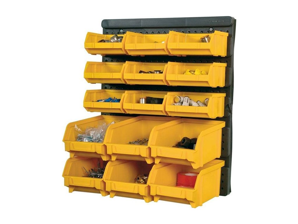 Stohovací bedny - sada s panelem 323x385mm, ArtPlast 322 9x bedna 101 (95x100x50mm)+6x bedna 102(103x166x73) + plastový panel 323x385x17mm, bez šroubůDoplňkové parametry