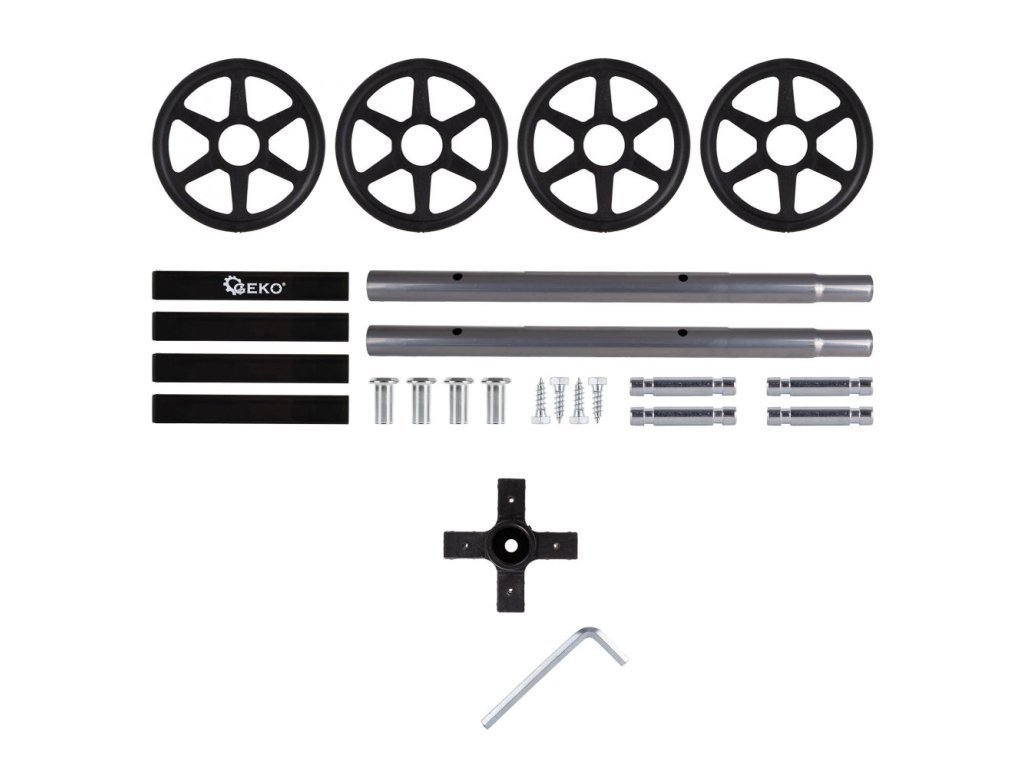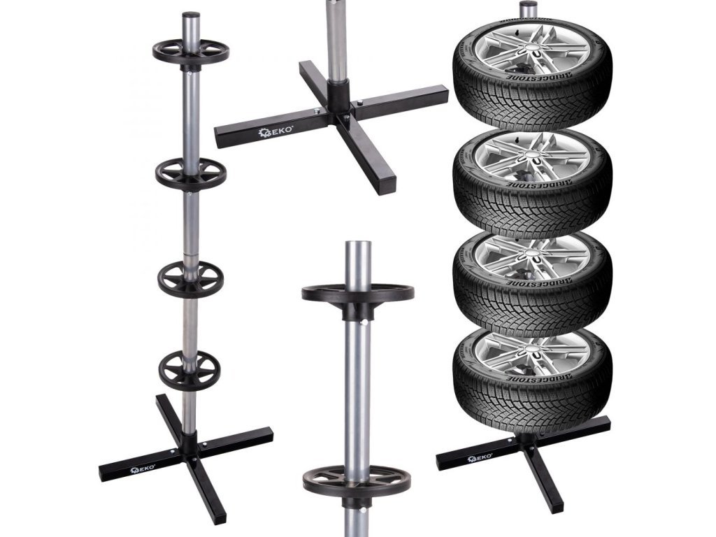 Stojan pojme dvě nebo čtyři kola, takže je dokonalým řešením pro uložení sad zimních, letních nebo rezervních kol, udržování pořádku a úsporu místa v garáži nebo dílně.