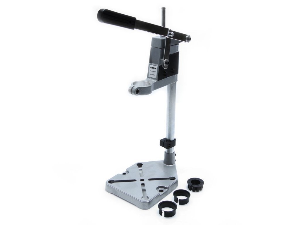 Stojan na vrtačku mění vrtačku na multifunkční a praktické zařízení. Stojan umožňuje vertikální změnu polohy připojené vrtačky, díky níž snižuje pravděpodobnost lomu nebo poškození vrtáku.