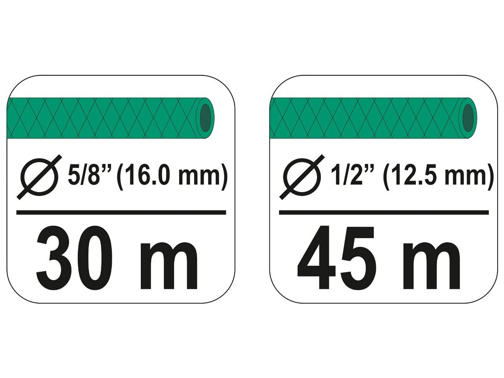 Stojan je vyroben z kvalitního plastu. Stabilitu stojanu poskytují nohy z ocelové trubky. Vhodné pro hadici 1/2 "o délce 45 metrů a 5/8" délky 30 m. Připojení na hadici 1/2" plastové koncovky