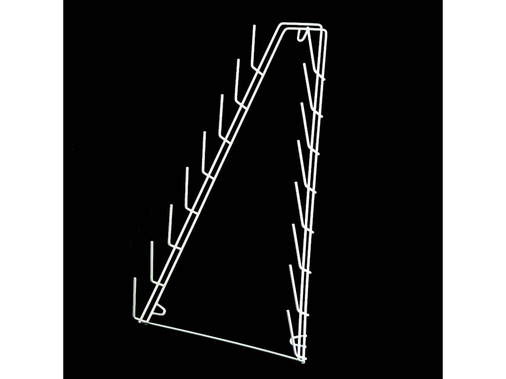 Závěsný drátěný lakovaný držák na 8 poklic, uchycení na stěnu pomocí 3 vrutů (nejsou součást produktu).Rozměry 24 x 6.5 x 44 cm.