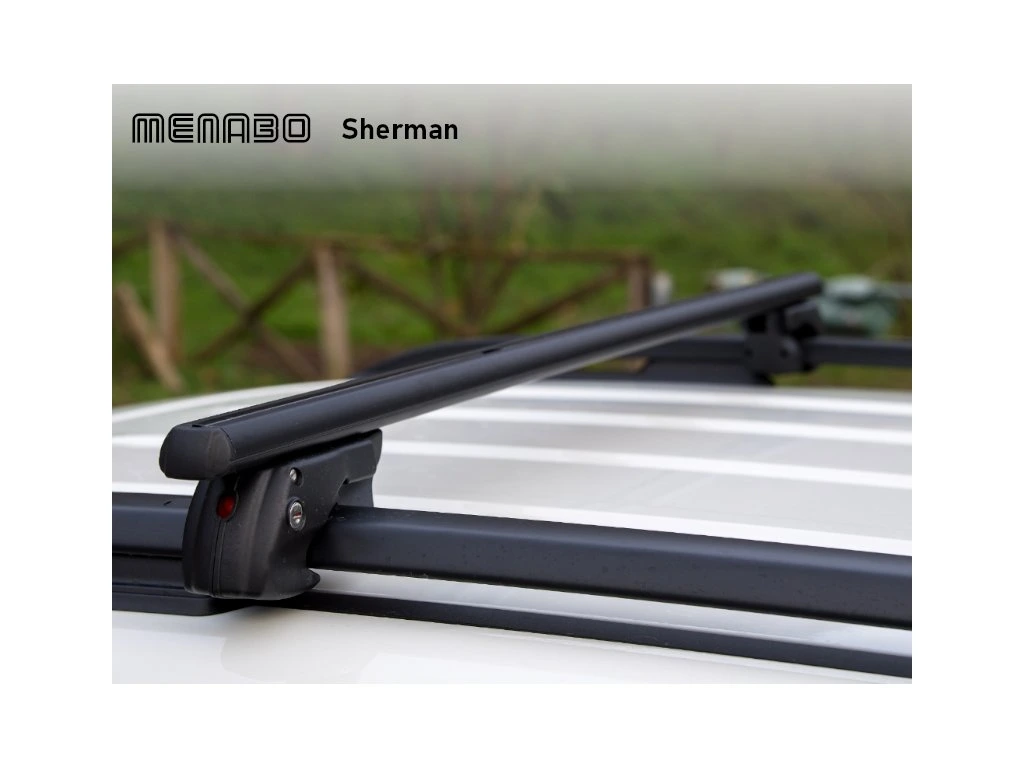 Střešní nosič Honda Elysion 05/04-, Menabo ShermanRychlé upevnění pomocí přiloženého nářadí. T-drážka: 21 mm Profil příčníků: 47 x 28 mm Materiál tyčí: Aluminium Maximální doporučená rychlost: 130 km/h Atest: TÜV a CITY CRASH Uzamykání a klíče: Součástí produktu Výrobce: Menabo, IT