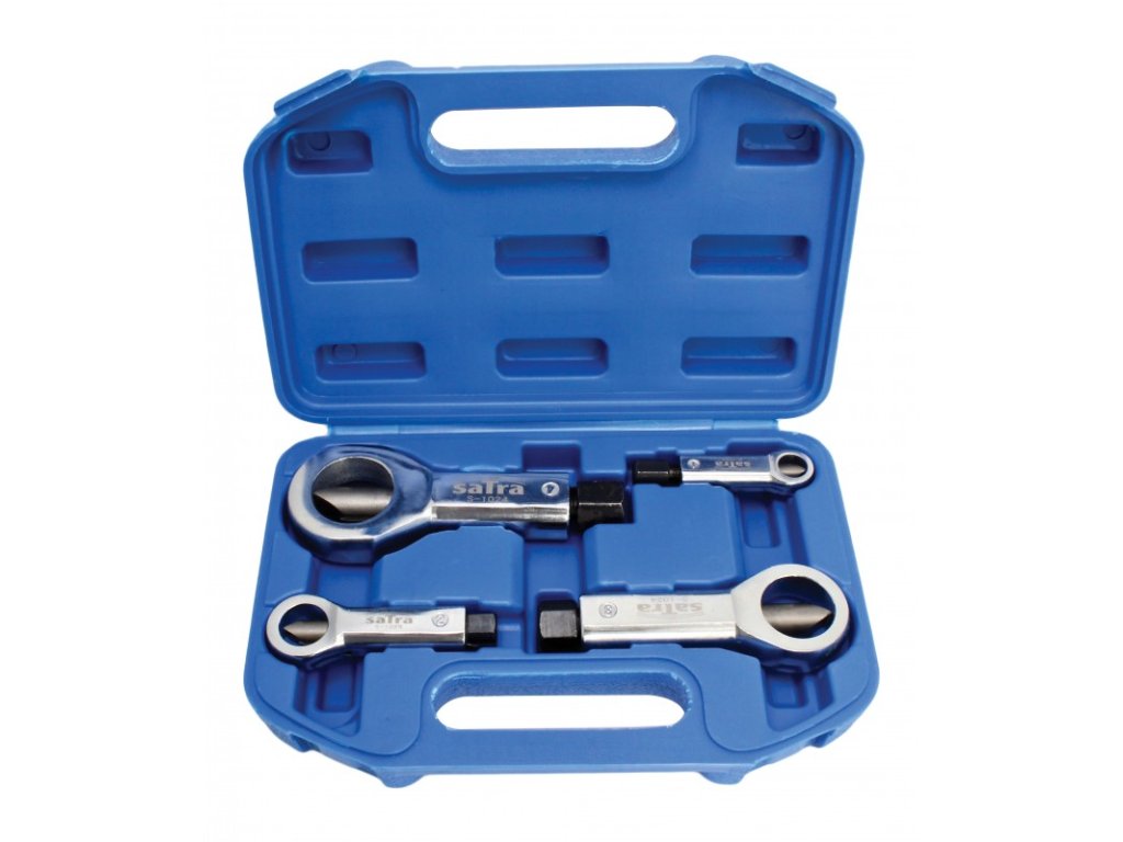 Sada 4 střihačů, tzv. „trháků“ na poškozené nebo zkorodované matice, 9-36 mm – SATRA S-1024.