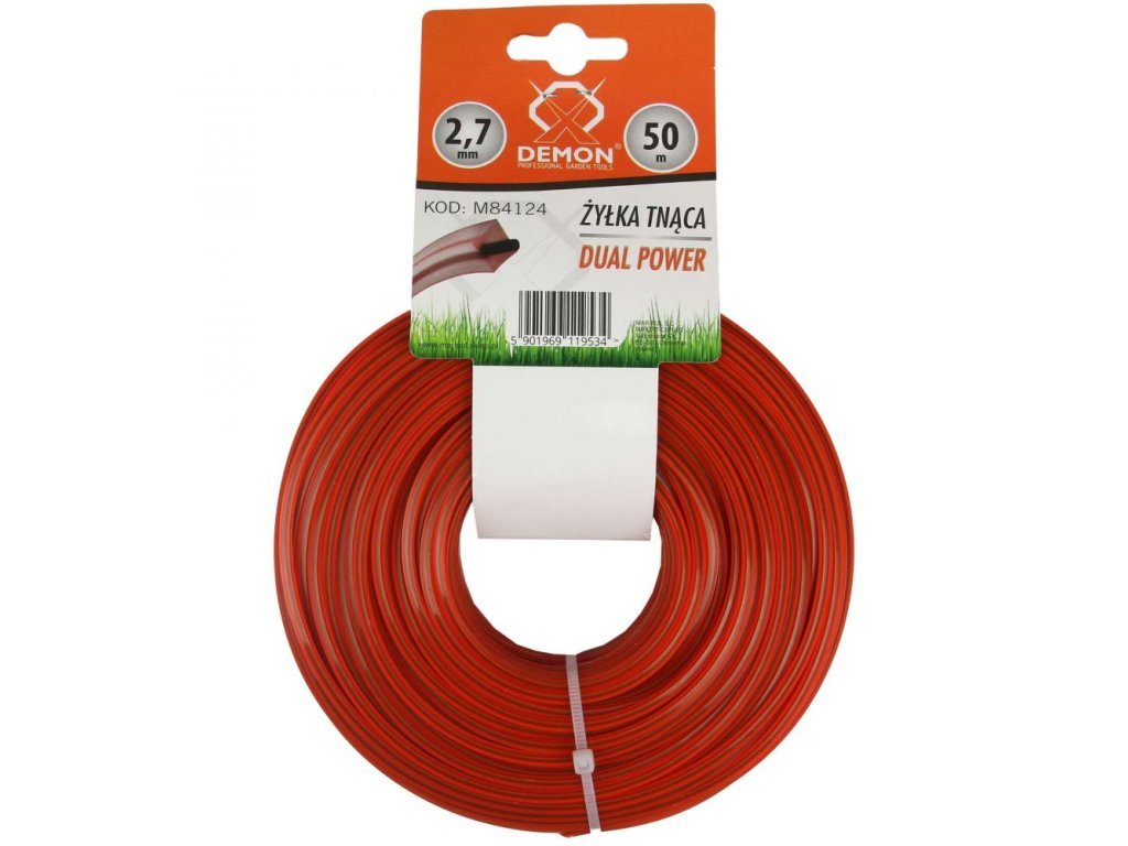 Náhradní struna pro kvalitní sečení pasuje do různých typů strunových hlav. Řezací struna DEMON je pevná a přitom velice elastická. Struna je odolná vůči vysokým teplotám. Díky těmto vlastnostem vydrží mnohem déle než běžná struna. Čtvercový profil struny zajišťuje rychlé, dokonce i profesionální sečení.Určeno pro křovinořezy, vyžínače nebo strunové sekačky na trávu.