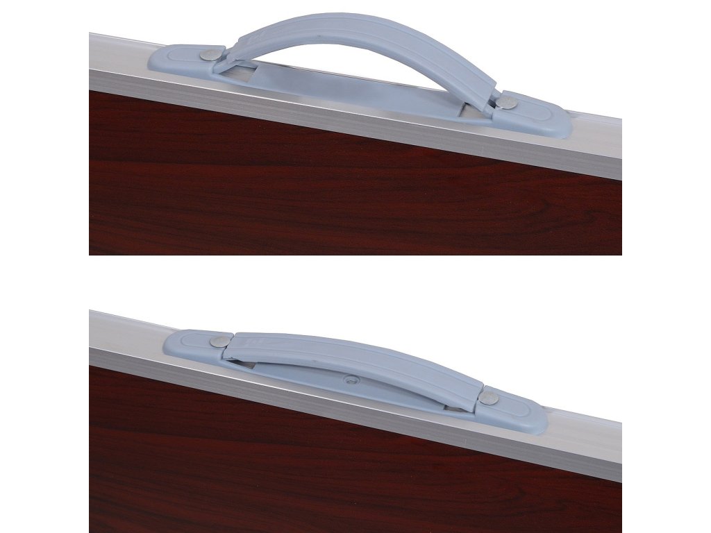 Pro své rozměry 80 x 60 x 4 cm a hmotnost 3,8 kg ve složeném stavu, je stůl skladný a je možné ho přenášet, díky prakticky umístěnému madlu na boku desky.