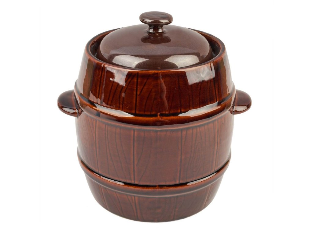 Tradiční kvalitně zpracovaný hermetický keramický sud zelák s víkem s glazováním používaný na nakládání zelí nebo okurek.Zelák se používá také jako dekorace na chatě nebo v domácnosti.