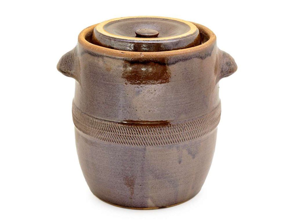 Keramický glazovaný sud na nakládání zelí, okurků apod. s víkem, objem 17 litrů.Slovenská výroba.