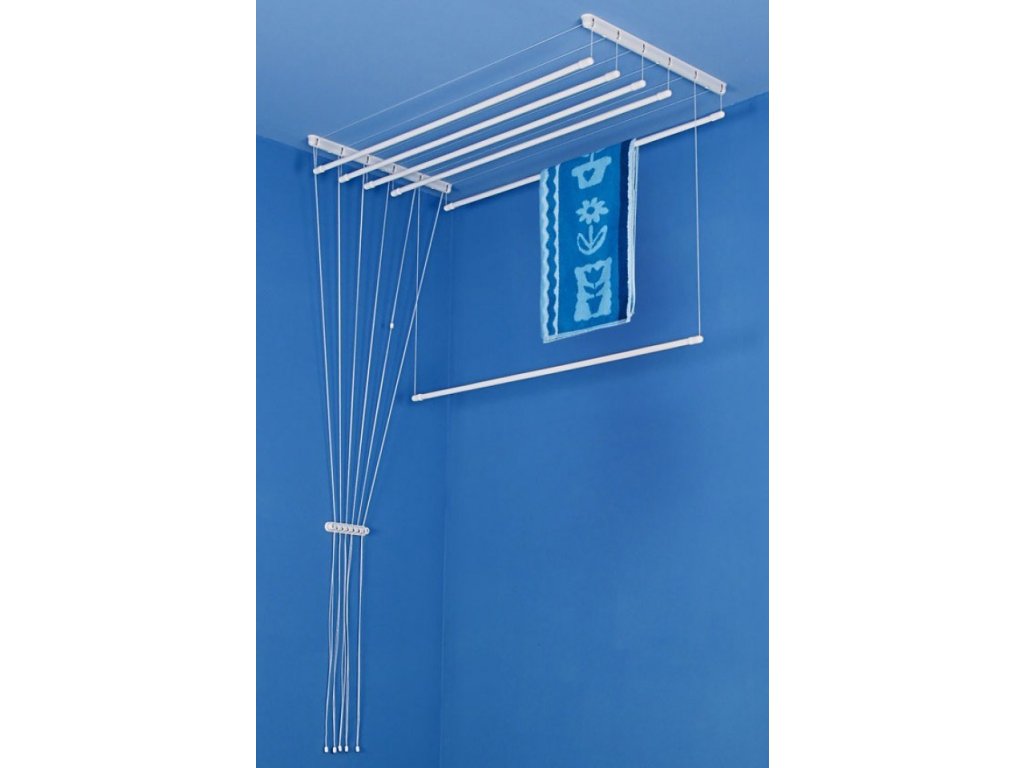 Stropní sušák na prádlo Ideal můžete umístit do koupelny s maximálním využitím prostoru.Prádlo zavěšené na stropní sušák nezavazí a rychleji schne díky přirozenému proudéní teplého vzduchu.