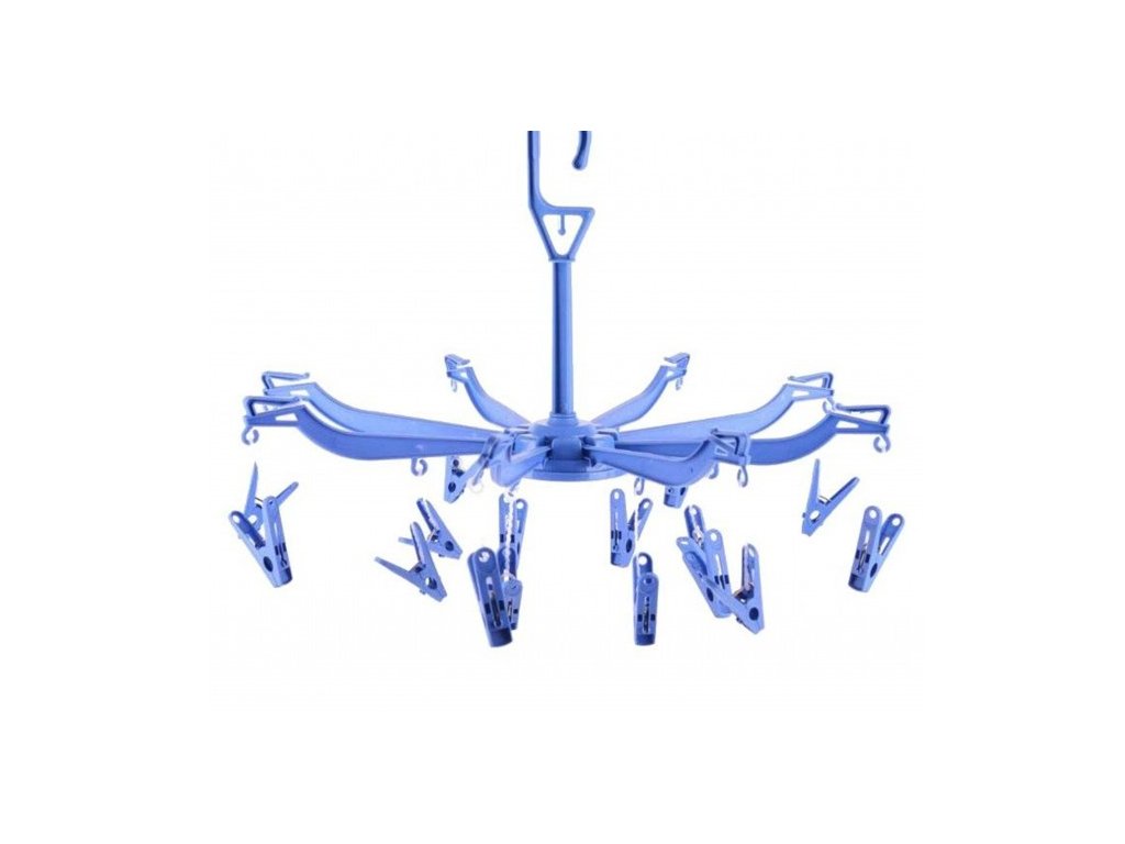 Skládací závěsný plastový sušák typu kolotoč, součástí je 16ks kolíčků, rozložený průměr 50 cm a výška 30 cm.Barva dle skladové dostupnosti.