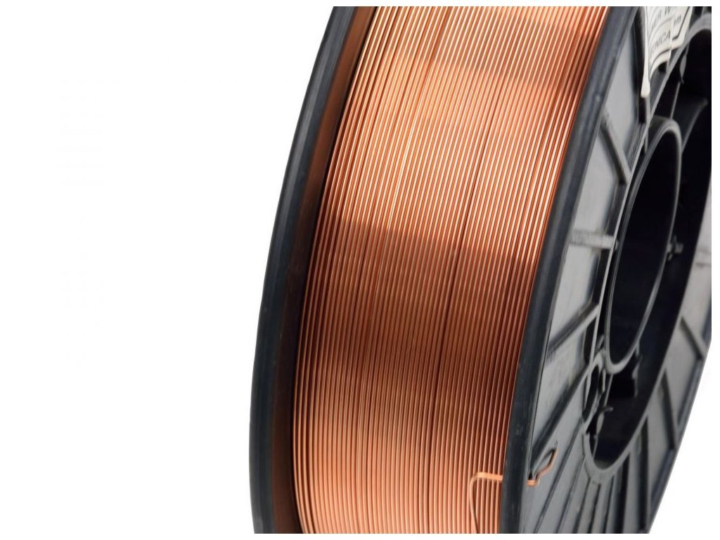 Vysoce kvalitní 1 mm silný elektrodový drát pro obloukové svařování inertním plynem. Měděný drát s přídavkem manganu a křemíku, který je určen pro svařování MIG / MAG. Drát lze použít se směsí Ar / CO2 a čistým CO2 jako ochranným plynem.