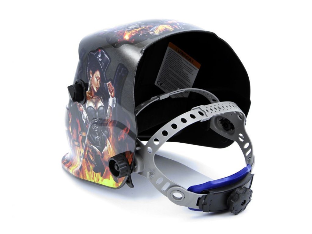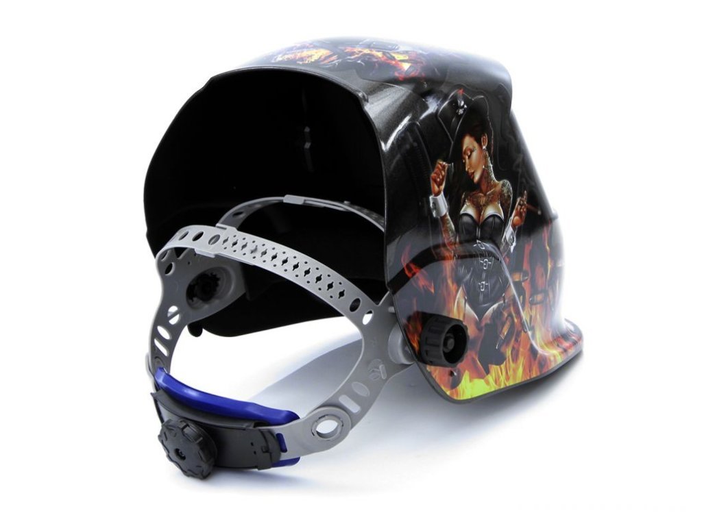 Svářečská kukla samostmívací s potiskem oheň a zbraň MAR-POL