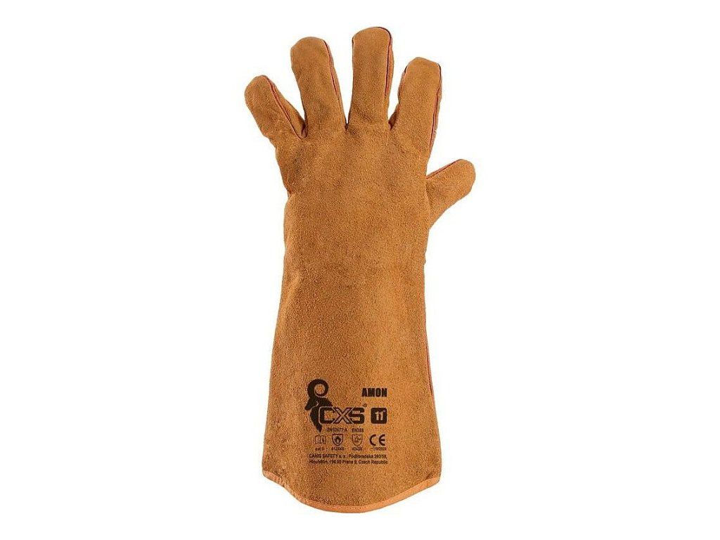 Celokožené svářečské rukavice s bavlněnou podšívkou v dlani a hřbetu, šité kevlarovou nití, zesílená dlaň.