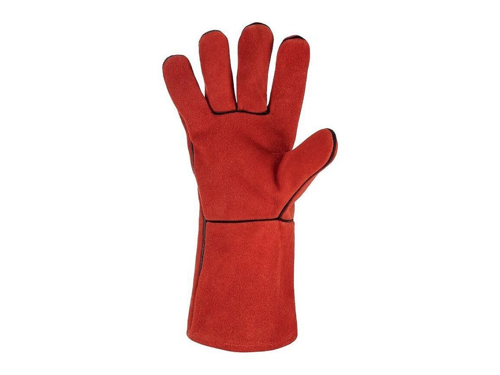 Celokožené svářečské rukavice s bavlněnou podšívkou v dlani a hřbetu, šité kevlarovou nití.