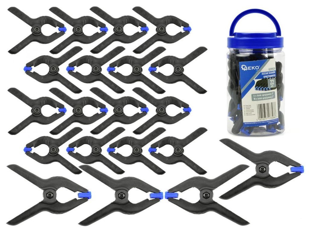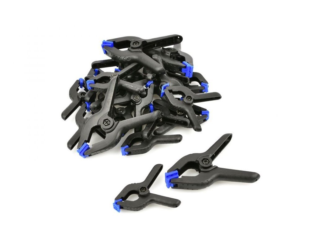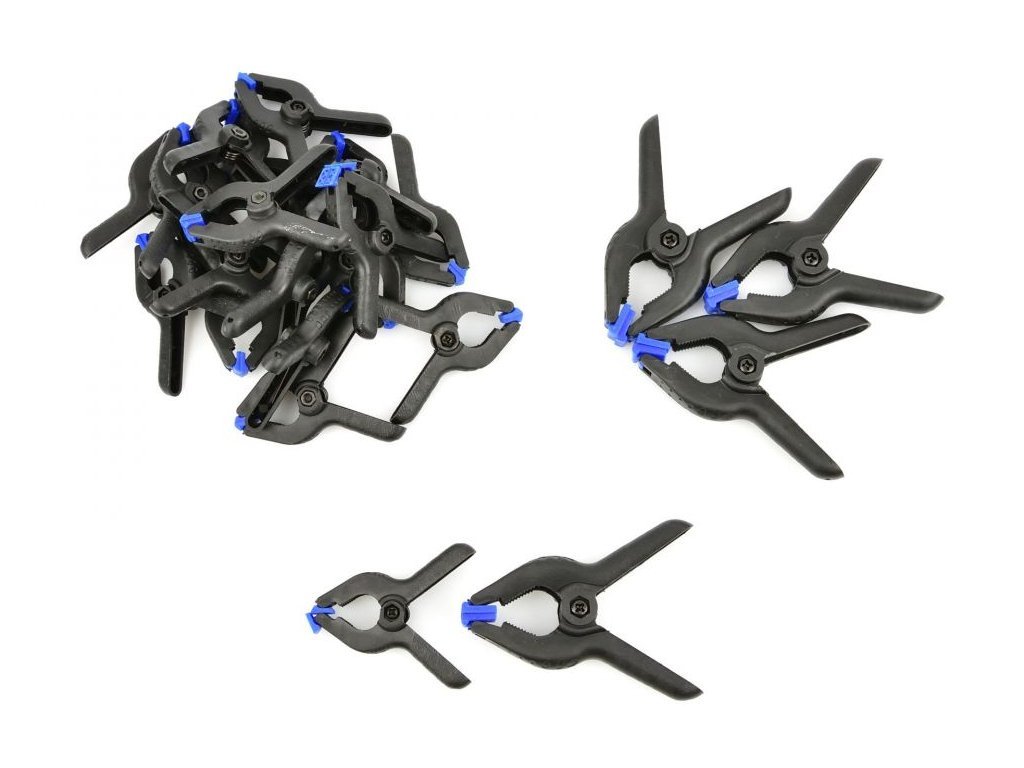 Sada 22 ks pružinových svorek vyrobených z odolného plastu, vybavených silnou ocelovou pružinou a výkyvnými čelistmi, které se přizpůsobí svíranému předmětu. Jsou perfektní například pro lepení různých typů prvků.