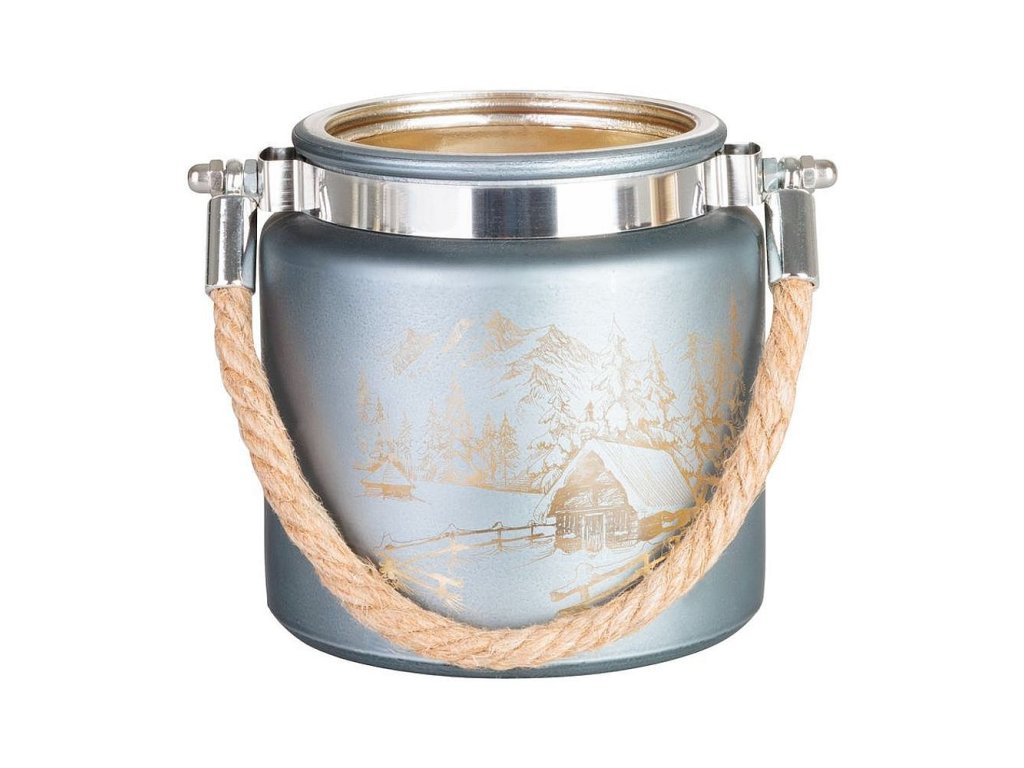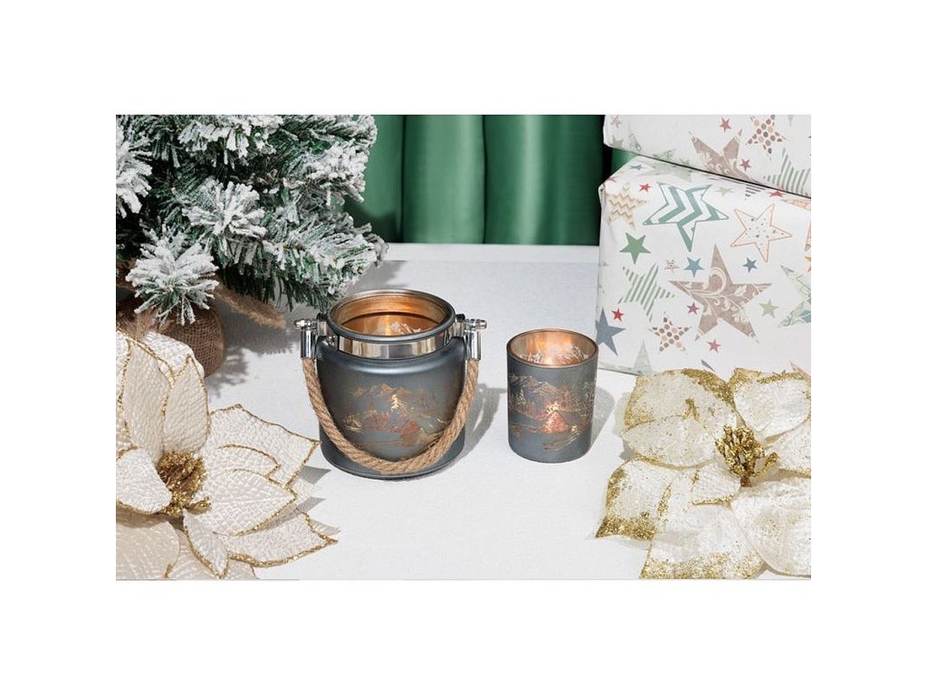 Tento šedý skleněný svícen o rozměrech 10 x 10 cm je zdoben půvabnou zimní krajinkou, která vnese do vašeho domova kouzlo Vánoc.
