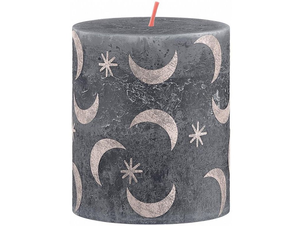 Svíčka válec bolsius Rustic with print Slate Blue, 68x80mm