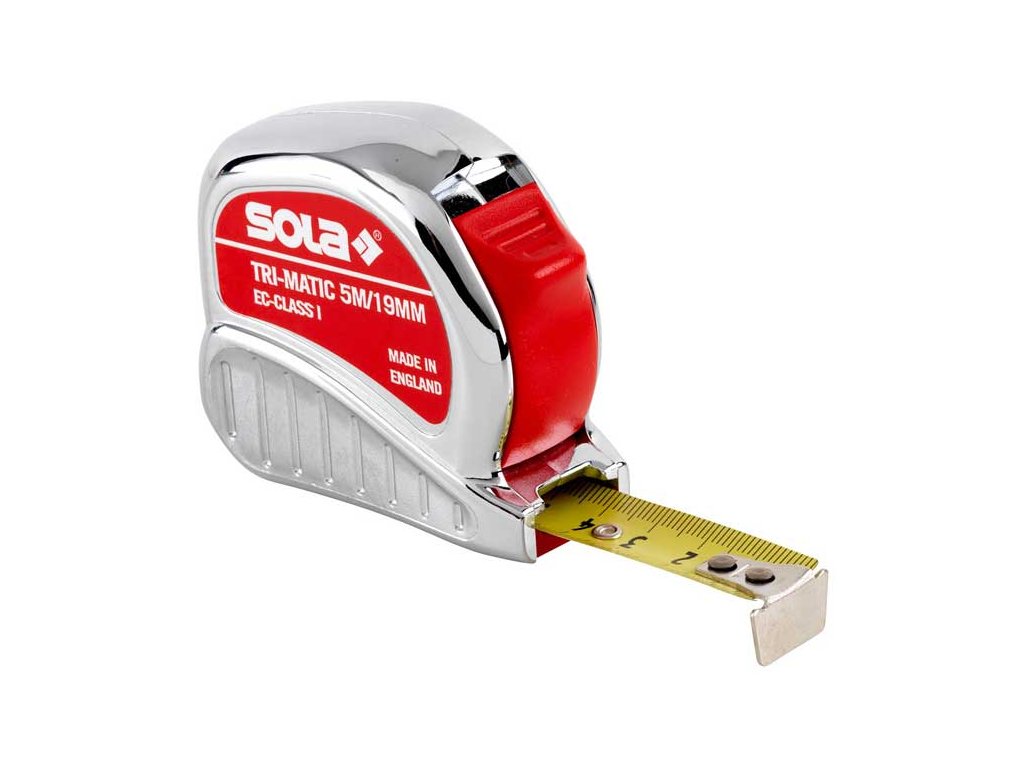 Pásmo měřicí – svinovací metr délky 300 cm a šířky 1,3 cm, s tlumičem zastavení a nárazu odolným pouzdrem – SOLA Tri-Matic TM 3