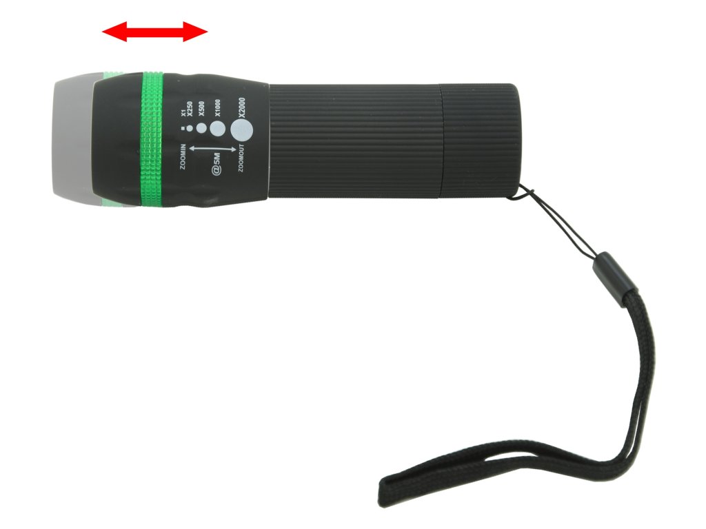 Vyzařovaný paprsek světla je plynule regulovatelný vysouváním předního členu, funkce ZOOM tak výrazně zvyšuje svítivost.