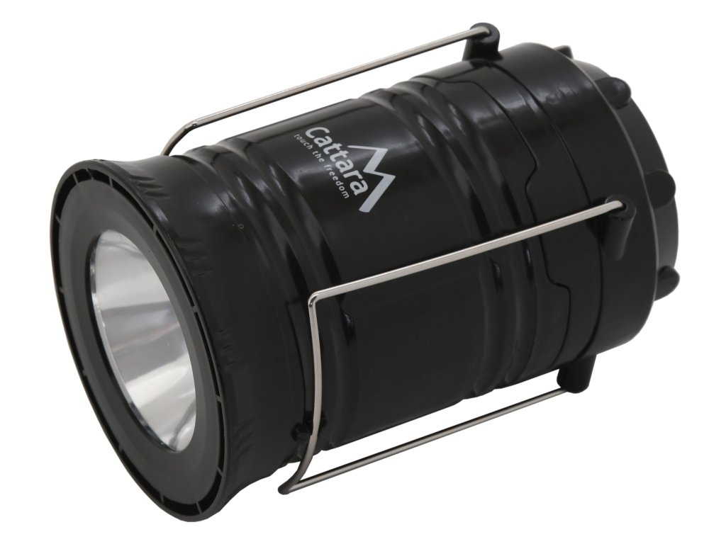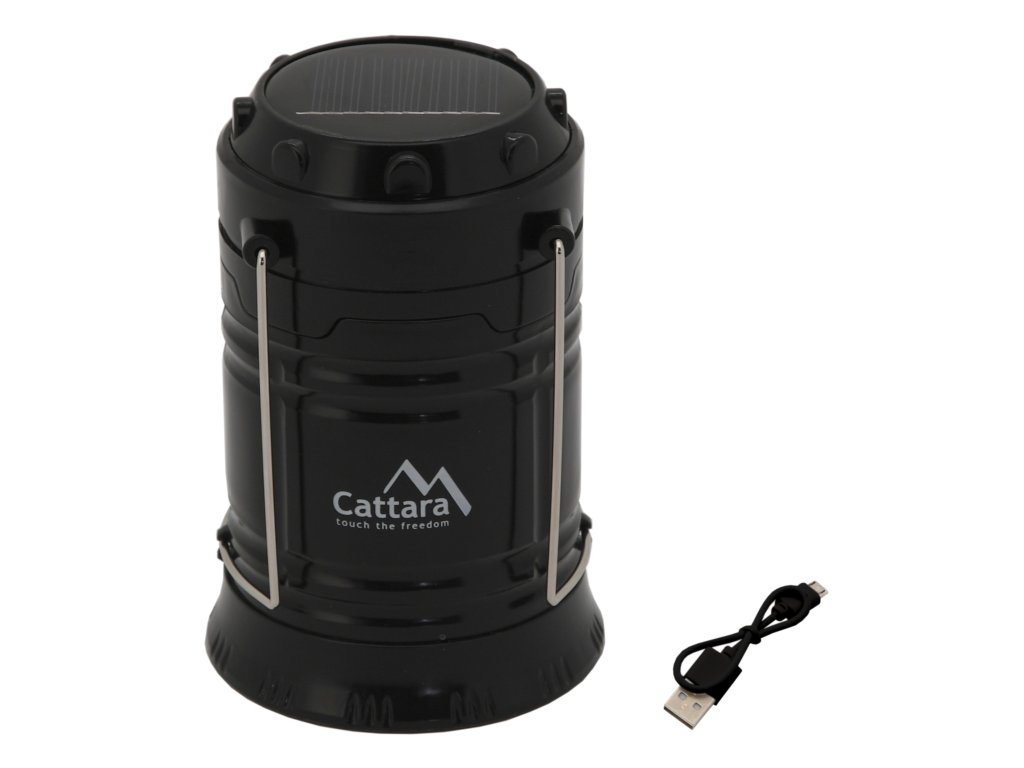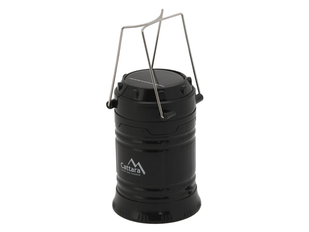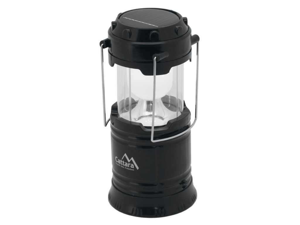 Kempingová LED svítilna s vysouvacím tělem, opatřená Li-Ion akumulátorem a solárním panelem.