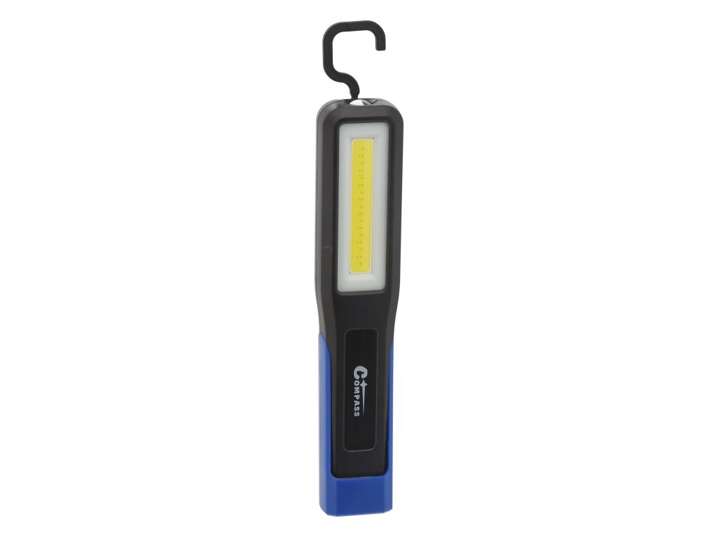 Dobíjecí montážní LED lampa, s nízkou spotřebou energie, čelním bodovým osvětlením a bočním rozptýleným osvětlením s vysokou svítivostí, doplněná červeným SOS signálním osvětlením.