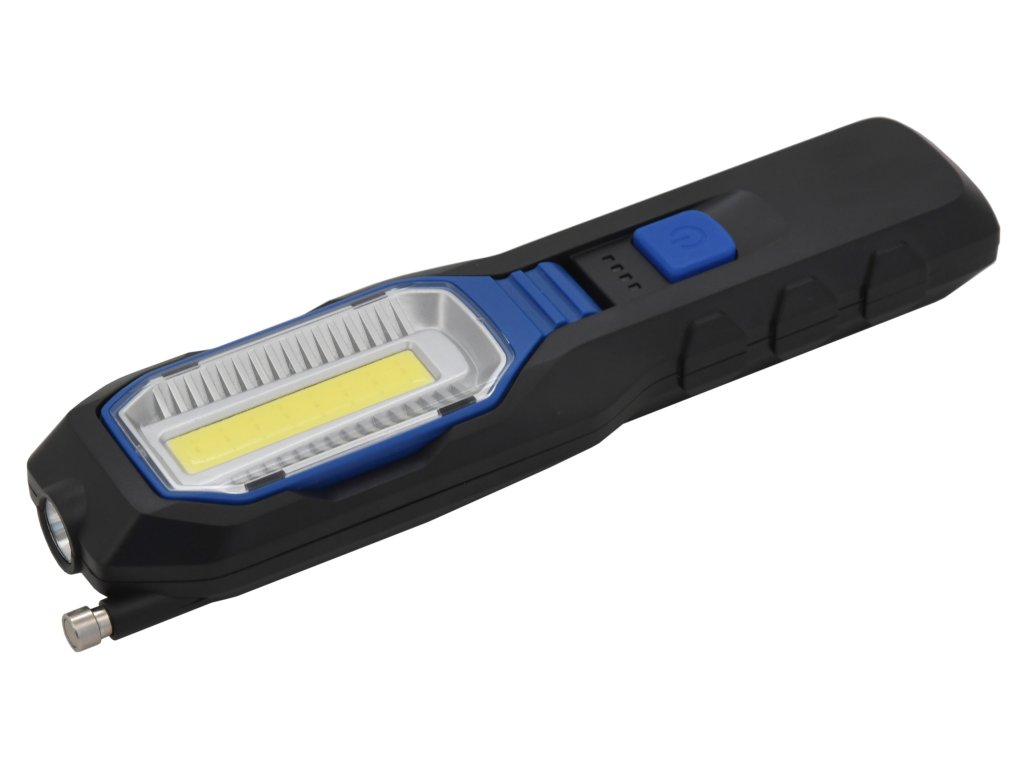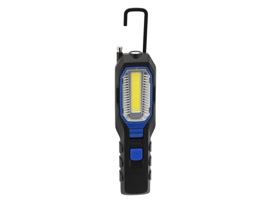 Dobíjecí montážní LED lampa, s funkcí Powerbanky. Nabízí čelní bodové osvětlení, boční rozptýlené COB osvětlení se dvěmi intenzitami, doplněné červeným SOS signálním osvětlením. COB panel lze vyklopit dle potřeby.