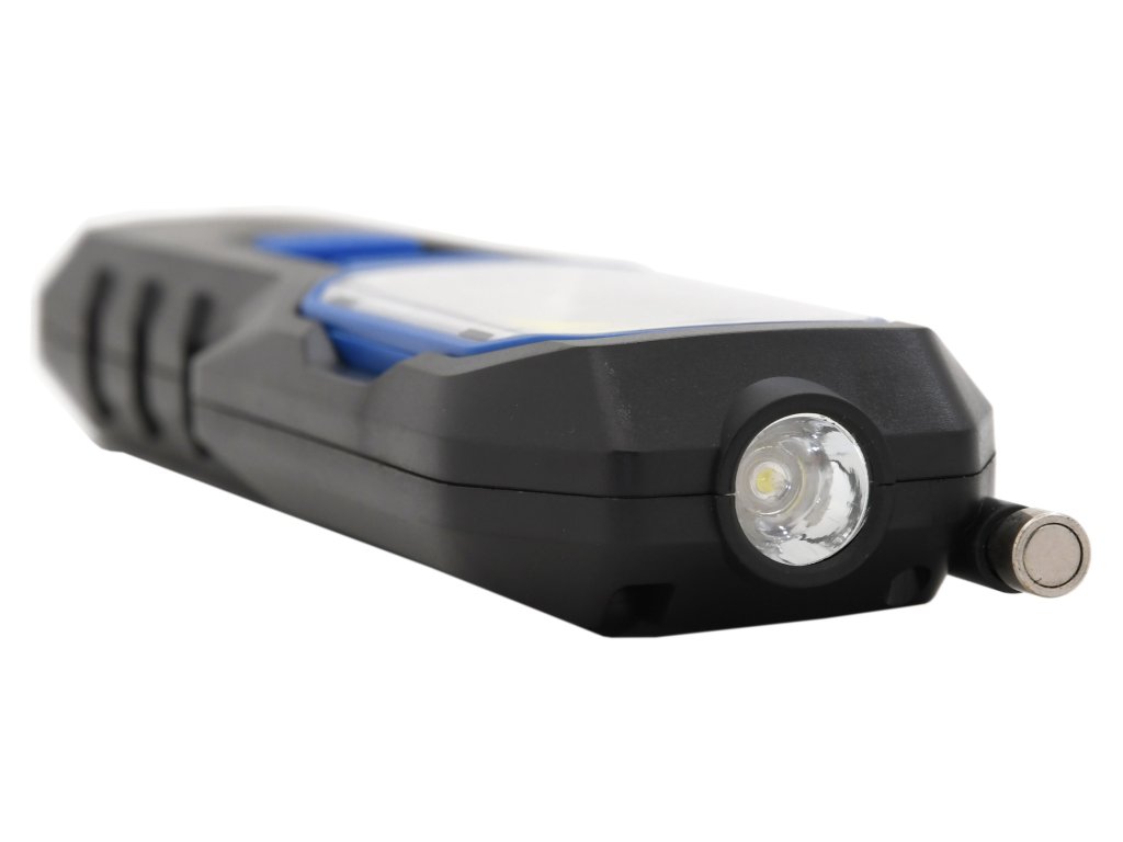 Dobíjecí montážní LED lampa, s funkcí Powerbanky. Nabízí čelní bodové osvětlení, boční rozptýlené COB osvětlení se dvěmi intenzitami, doplněné červeným SOS signálním osvětlením. COB panel lze vyklopit dle potřeby.