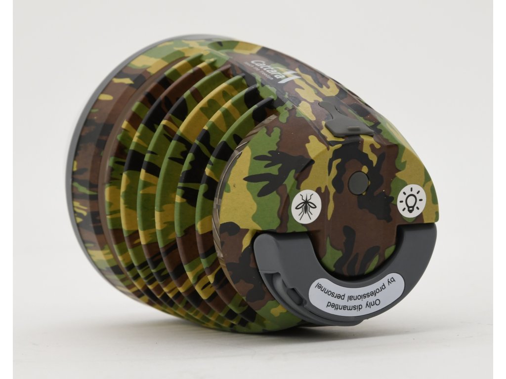 Lampička s elektronickým lapačem hmyzu, který využívá světlo s ultra fialovými paprsky pro efektivní nalákání létavého hmyzu (např. mouchy, můry, moly, komáry a další). Hmyz je po kontaktu s kovovou sítí pod vysokým napětím zahuben elektrickým proudem. Přístroj k hubení nevyužívá žádných chemických látek, pracuje bez zápachu a bez znečištění.