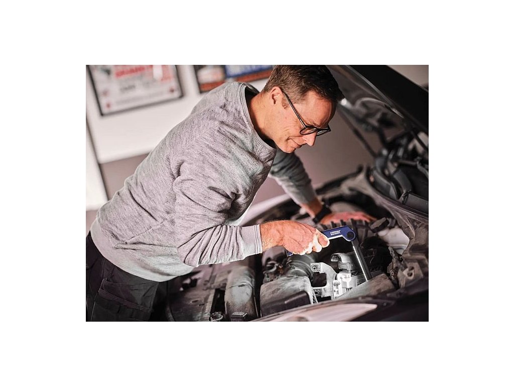 Mechanic je kompaktní a odolná ruční LED svítilna, kterou můžete mít v garáži pro práci v těsných prostorách, například pod kapotou auta.