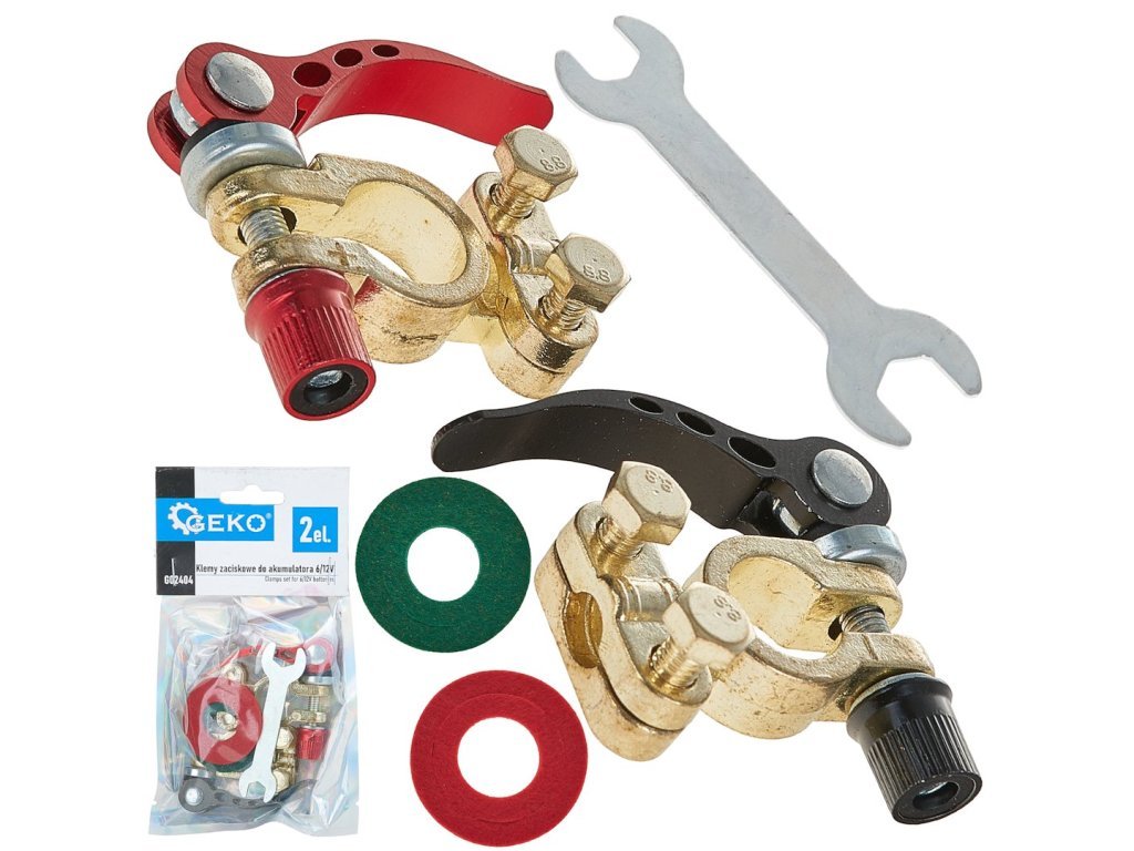 Svorky na autobaterie 6 V a 12 V, mosazné s páčkami, 2 ks - GEKO