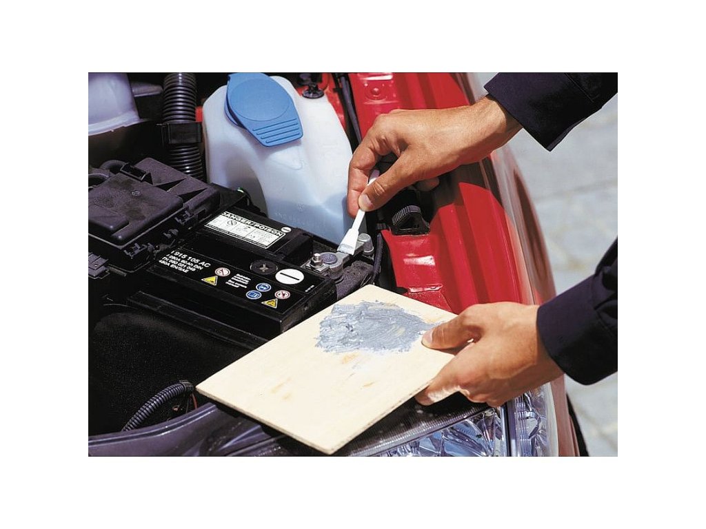 3. Aplikujte lepidlo CEYS OPRAVY KOVU v několika vrstvách a pomocí špachtle na ošetřovaný povrch a několik minut nechte schnout. Doba vytvrzení závisí na konzistenci směsi, čím hustší, tím rychleji uschne.