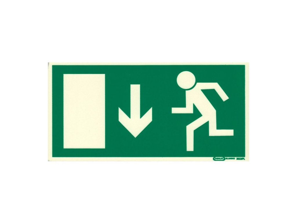 Tabulka - Únikový východ - šipka dolů (FL samolepka 210x105 mm)