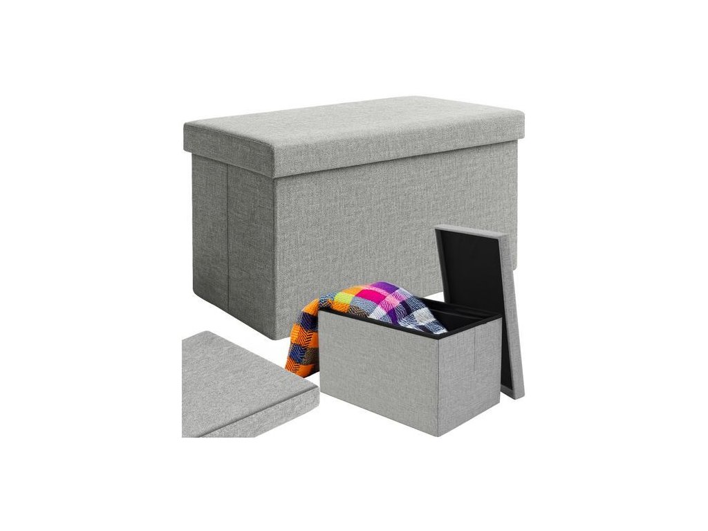 Taburet skládací látkový, 80 kg, 60 x 30 x 30 cm, šedá, Ruhhy Sedák RUHHY s úložným prostorem je praktickým a stylovým řešením pro váš interiér. Je potažená nepromokavou MDF látkou, má měkké sedátko a prostorný úložný prostor o objemu 54 litrů - ideální pro uložení drobných předmětů, hraček a dek. Skládací konstrukce, vysoce kvalitní zpracování a maximální nosnost spojují otoman s funkčností a elegantním vzhledem - bude se dobře hodit do obývacího pokoje, ložnice i chodby.- velká kapacita - až 54 litrů, vejde se sem i peřina