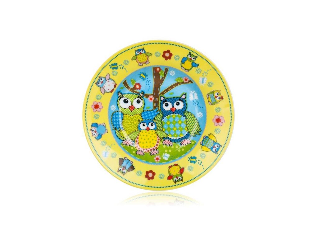 Keramický dětský talíř hluboký dekor sovičky, průměr 20 cm.