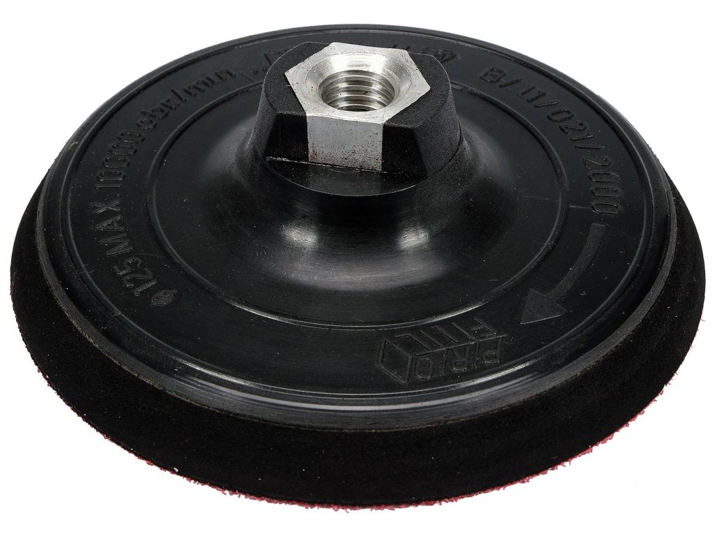 V pracovní části suchý zip pro rychlé a stabilní upevnění brusných kotoučů o průměru 125 mm.