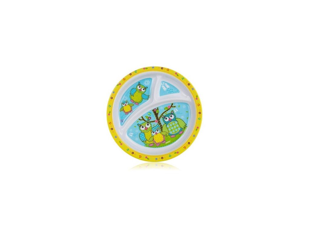 Melaminový talíř dělený průměr 21 cm OWL s dětským motivem soviček.Materiál 100% melamin.