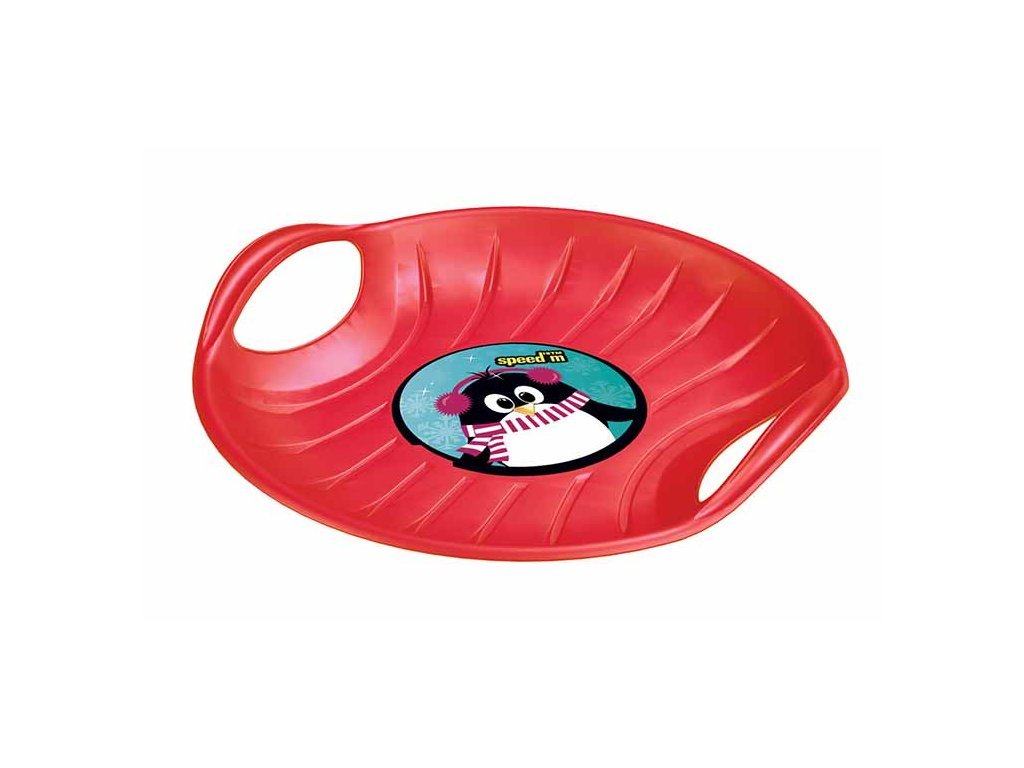 Talíř s průměrem 60 cm a výškou 9 cm je ideální pro zimní radovánky. Lehká konstrukce umožňuje snadné přenášení, přičemž je dostatečně pevný, aby překonal i menší hrbolky. Jeho výrazná červená barva navíc skvěle vynikne na každém zasněženém svahu.